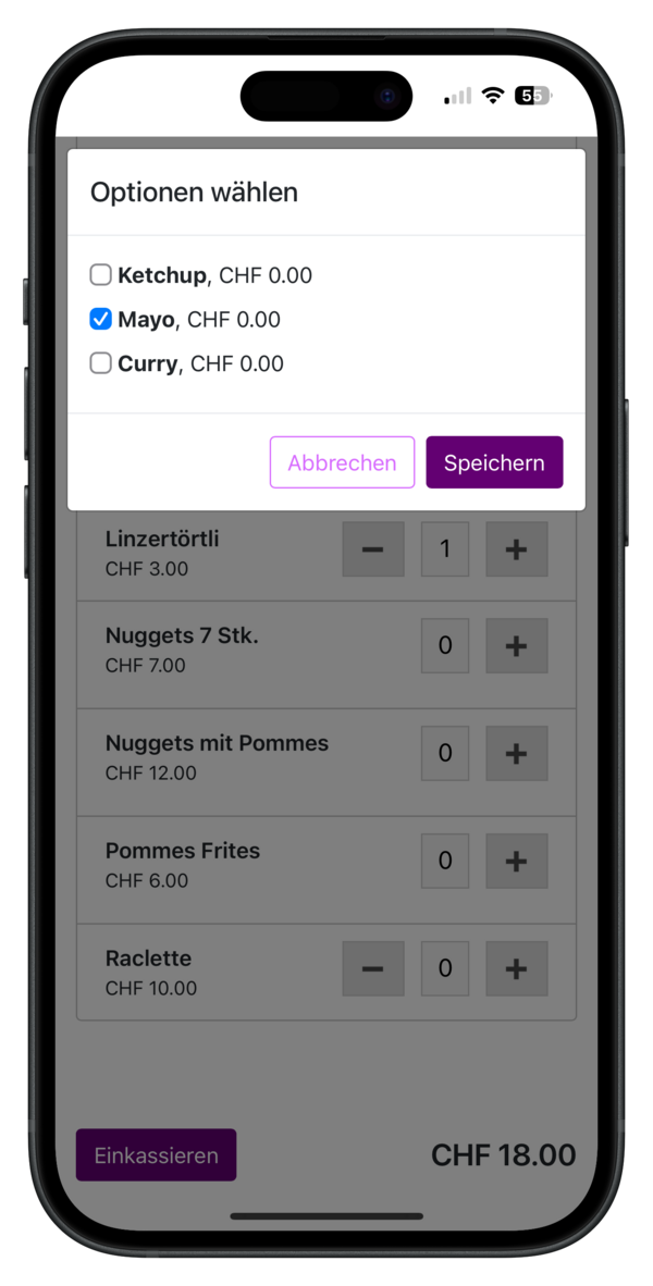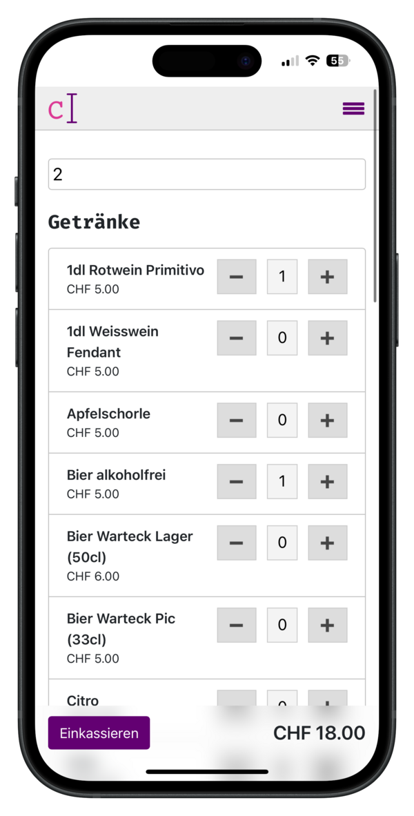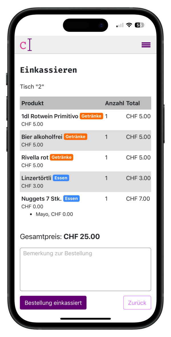 3. Kassiere den Betrag ein und sende den Bon kabellos zu den Druckern